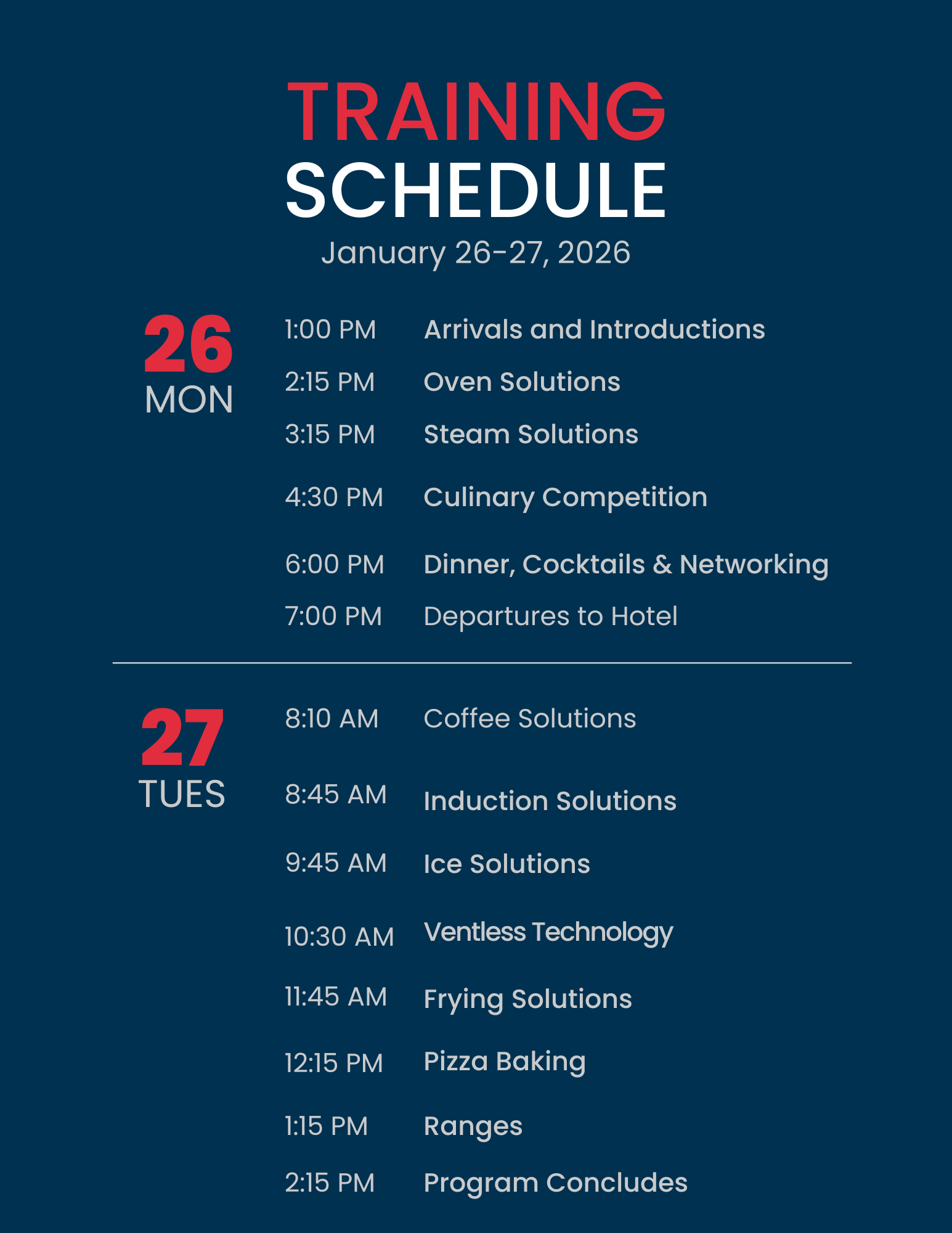 Participants will engage in both classroom-style learning and hands-on cooking activities with the equipment. To reinforce their skills and apply their newfound knowledge in a practical setting, attendees will also take part in an exciting cooking competition.